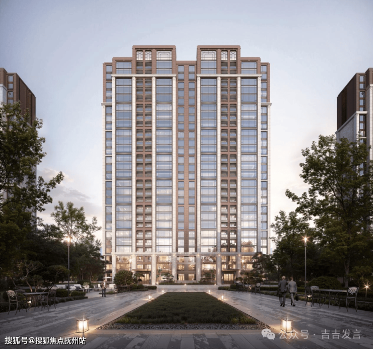 一庭:【瑰丽门庭】酒店式豪宅美学界面,以金属细节和石材彰显贵气,定制化艺术铺装彰显入口门庭;奢华大挑檐,中心设计艺术水景,增加入口仪式感;结合门楼落客等候区设计山水庭院,由恢宏门庭到自然花园,华丽向自然的过渡,彰显豪宅礼序。