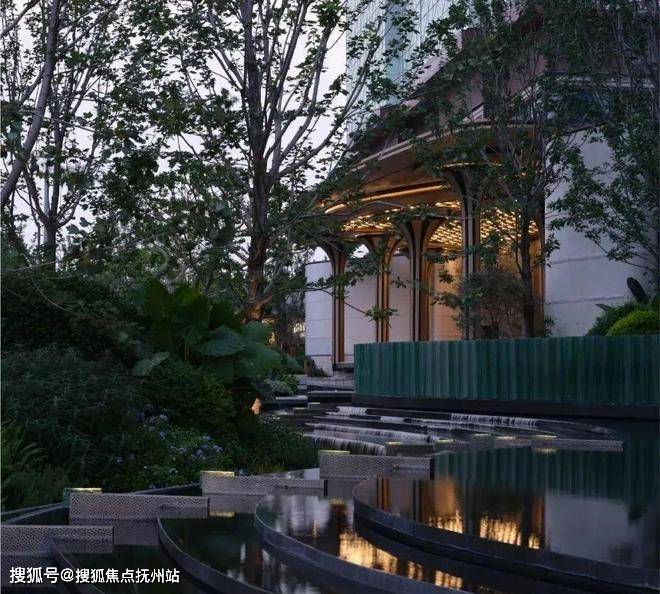 以匠心雕琢光影水韵之美,层叠水景与灯光延展出优雅的序列;以传奇的蒂芙尼蓝为灵感源泉,采用独创的U型玻璃熔铸工艺,将琉璃的梦幻光泽与水的灵动质感完美融合。