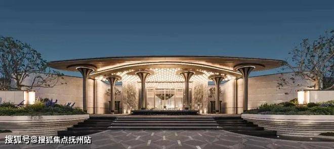 项目门头设计恢弘大气,设计师从“浮岛”中汲取灵感,将立柱化为悬浮雕塑,以自然的秩序与美学,共同勾勒出轻盈而富有仪式感的花瓣造型。
