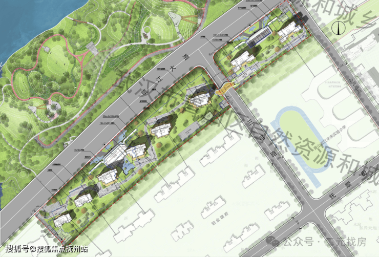 项目分为两个组团,西边组团有6栋住宅(1-3号楼、5-7号楼),东边组团有5栋住宅(8-9号楼),两个地块通过空中连廊连接。