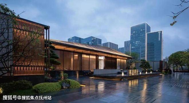 项目建筑设计首层石材干挂+四面铝板+三波两腔玻璃+超高窗墙比配上,高级感和艺术美同时在线。顶端的中式飞檐,东方建筑美学融入现代审美。