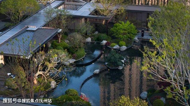 汲取京都安缦酒店设计灵感,融合燕尾榫地砖、鱼鳞纹、竹节纹等传统古建元素,打造遇建咖啡休闲庭院空间。三进空间同样采用了诗意洄游的动线方式,以微察妥思的设计构建度假感,创造的空灵广博的人居空间。