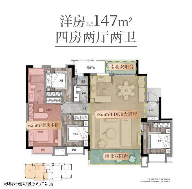 建筑面积约147㎡的户型为例,这款首批次热销清盘的“明星户型”,可以说将“迭代洋房”的产品内核演绎得淋漓尽致。