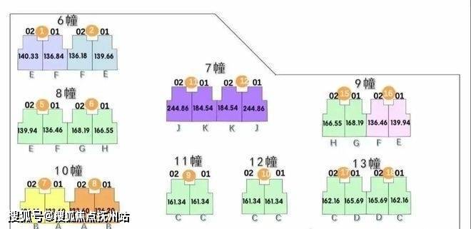 1、2、5、6、7、8、9、17、18号楼,共9个单元,合计349户