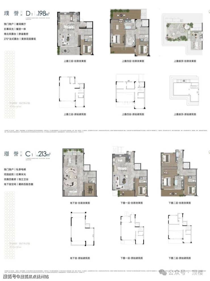 ·叠加——上叠 建面约198㎡、下叠 建面约213㎡;