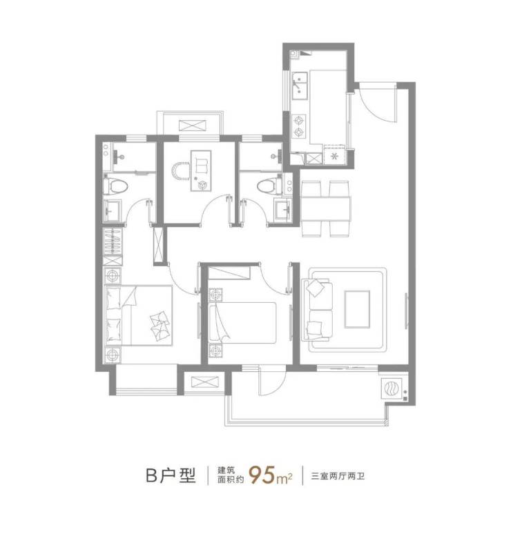 95平(三房两厅两卫):235-264万