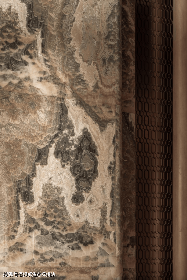 另外,项目首层通过硬朗直线呼应柔和曲线勾勒,辅以温润石材与古铜色金属线条融合,打造东西方美学共融的艺术藏品。