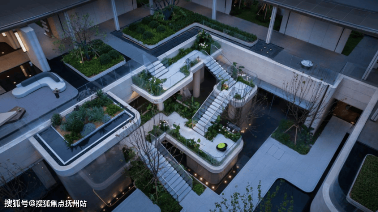 点睛之笔在于4层悬浮式阶梯,设计理念效仿全球十二大奢华酒店之一的迪拜丽晶公寓,每一个观景露台都种植着不同的植被,一步一景,更为重要的,是不同的露台对应着不同的观景视野点,能够将不同高度的下沉式庭院景观,通过极其优雅的方式传递给业主。
