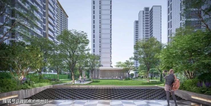 社区入口打造为酒店式环岛落客区,产品实现跃级,结合水景以及时光展厅及会客区串联为三重归家礼序