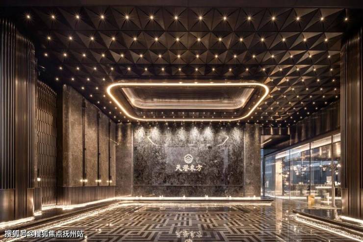 相信很多人都被天誉东方的劳斯莱斯星空顶车库刷屏过,坡道仿岩纹碳素板、地面石材铺装,格栅吊顶,格调拉满。