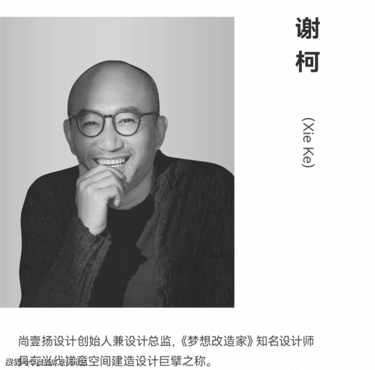 谢柯——尚壹扬设计创始人兼设计总监,《梦想改造家》知名设计师,坚持以“做有诚意、人文的设计”的理念,将具有温暖与关怀的现代东方风格融入设计之中,也具有当代禅意空间建造设计巨擘之称。