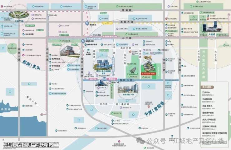 〖佛祖岭公园〗:位于项目西侧约1000米,绿地面积约4.6万㎡,绿地率约74.1%。规划以“彩虹”为主题,通过“彩虹之桥”、“彩虹之路”、“彩虹之眼”三大分区呼应主题,打造节能高效、科技前沿、色彩缤纷的光谷社区公园。佛祖岭公园预计2025年开放