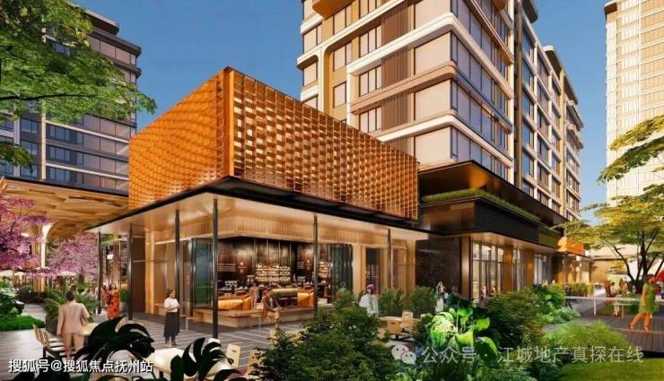 以东方屋檐为设计风格,打造摩登烟火的商业街区。商业街与公园无界融合,无界自然融合、丰富漫游体验,让业主在家门口,即可享受媲美非标商业的游逛体验。