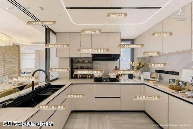 又如,帝朗多功能大单槽,悍高天使拉篮、RO反渗透净水器、博洛尼橱柜,还有隐藏式凉霸,偏中高端品牌。