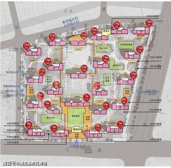 地块基础信息如下:项目用地面积82657㎡,总建筑面积283529.33㎡,其中地上计容建筑面积198376.8㎡,地上不计容建筑面积3382.18㎡,架空层地库建筑面积54270.35㎡,地下总建筑面积27500㎡。容积率2.4,建筑密度22%,绿地率35%,建筑限高80米。