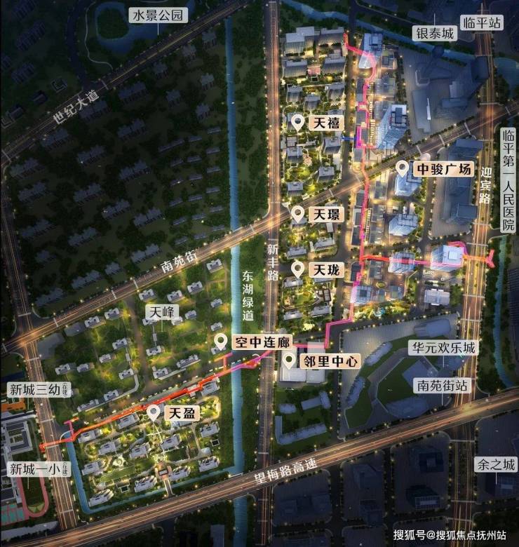 想象一下未来的生活吧,通过空中连廊送孩子到西面的新城一小(在建)读书,从楼下直达地铁9号线预留在临平站、南苑站的出入口,去往城市各个方向,完全不用考虑堵车的烦恼。购物、休闲,就去家门口的商业街或农贸市场。日常看病,可以去与三甲医院合作的社区卫生服务场所,也可以到旁边的临平排名前列人民医院。想创业?双创空间有共享办公室,智能化办公场景助你实现创业梦。