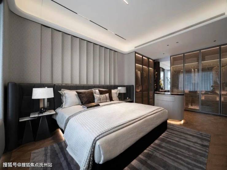 约44.5㎡总统套房主卧,臻享约6.8米的瞰景飘窗,让视野更加开阔,阳光与清风肆意流淌,预留L型漫游式衣帽空间,满足主人对衣物收纳与时尚展示的需求;独立卫浴间匹配双台盆、浴缸,让居者尽情享受私密与奢华。