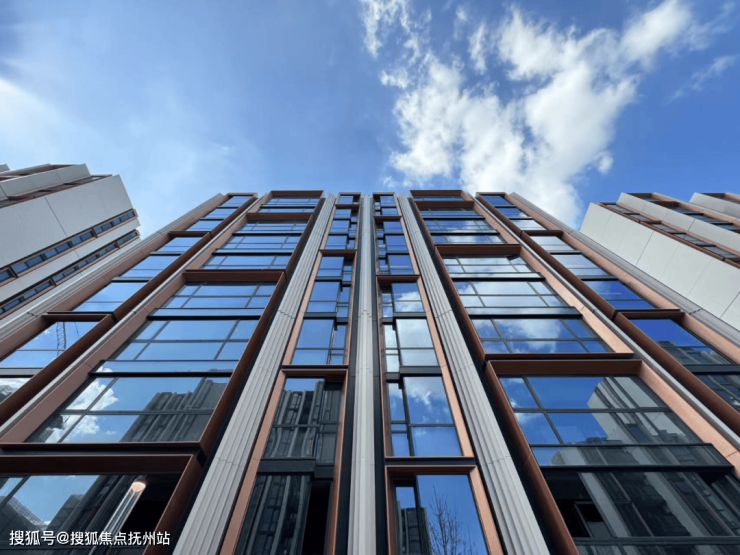 天安1号前期的住宅外立面选用铝板+石材,搭配大面积玻璃,颜值出众!
