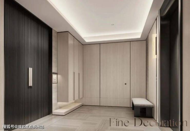 首先值得一提的,是长江天际的板式独梯独户设计,高度契合了高净值家庭的私密性需求,室外空间室内化的设计手法,将电梯厅打造为入户的序厅,可依据业主构思布置不同的场景,增强归家的仪式感。