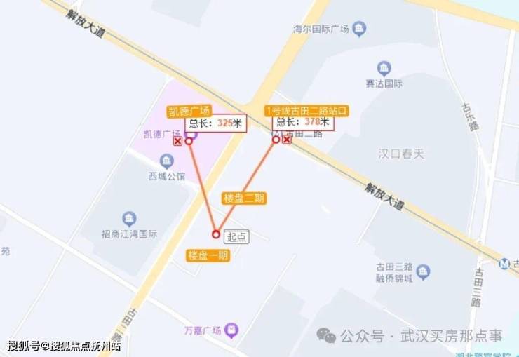 楼盘交通还是很方便的,旁边古田二路,解放大道都是主干道,往二环或者三环都不远,并且挨着轻轨1号线古田二路站口,是武汉最早通车的轨道交通。马路对面是商场凯德广场,购物也很方便。