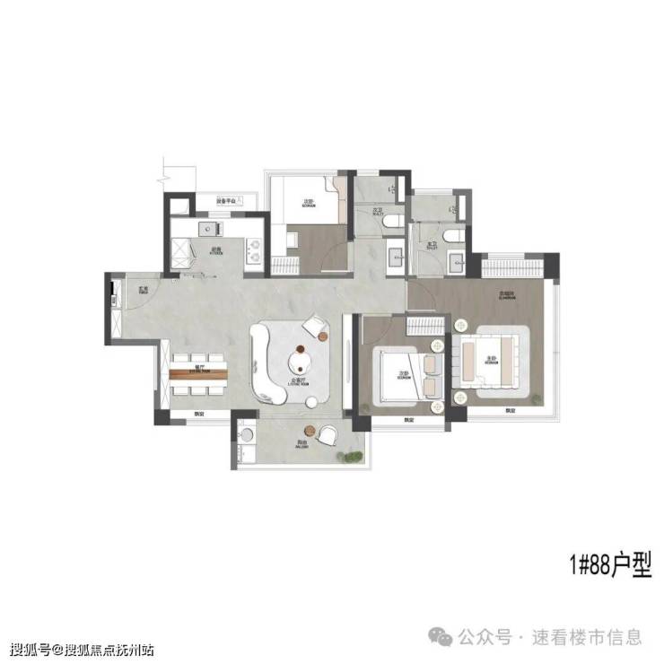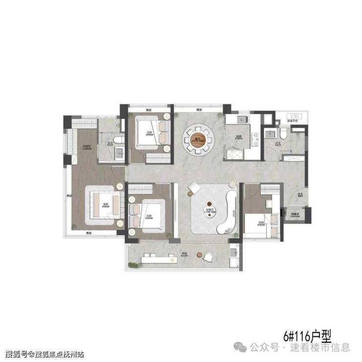 项目的主力户型为80+㎡、90+㎡、100+㎡、110+㎡和130+㎡的三至四房产品。四房户型占据了项目的80%左右,满足不同家庭的需求,且每个户型的使用率可达115%,相当高效合理。