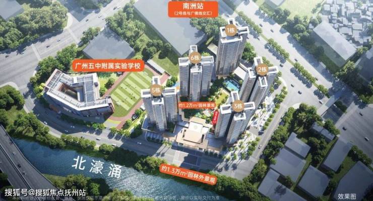 南洲站前,双地铁上盖,四纵两横主干道,快速连接CBD