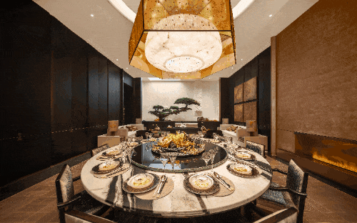紧接着,步入第二境的舒卷归堂,约13米的挑高,尽显大气磅礴,富有东方意蕴的穹顶设计,让整个空间瞬间有了引人瞩目的焦点。