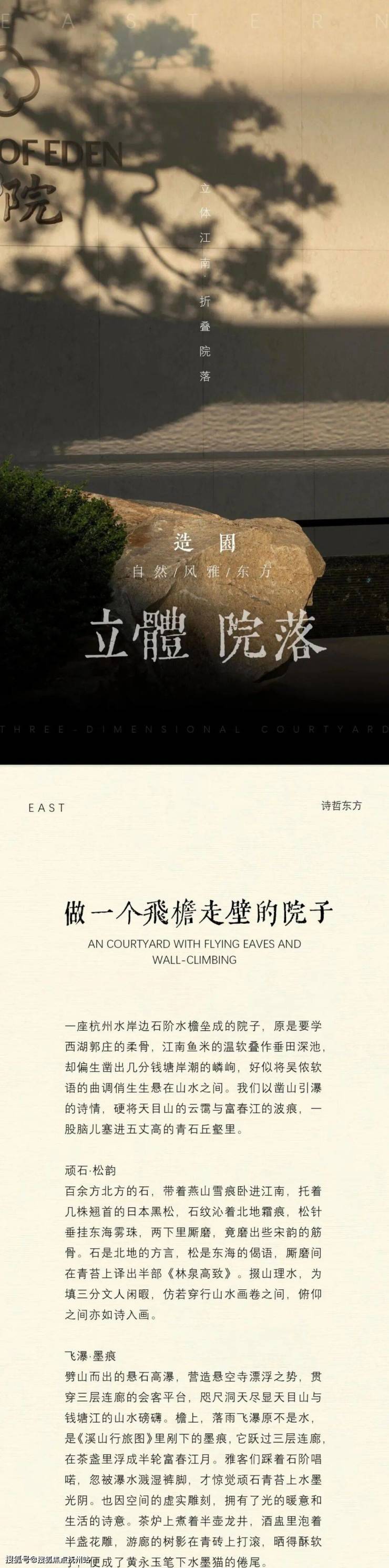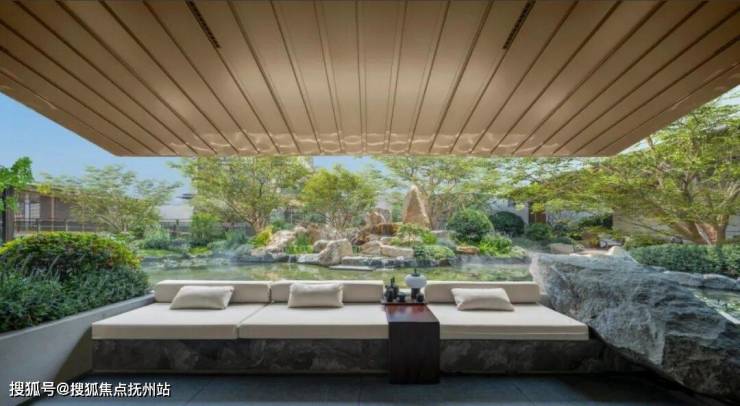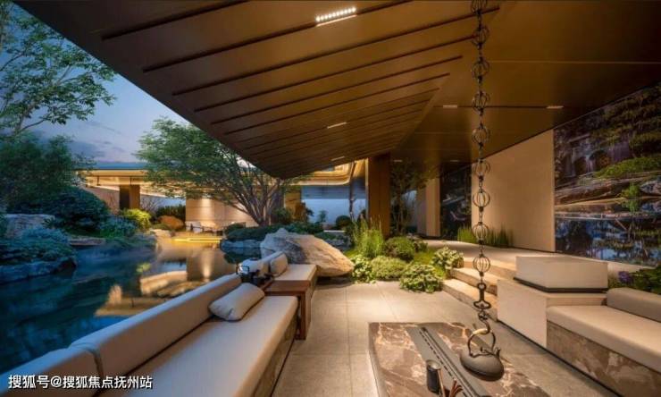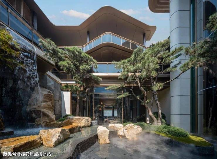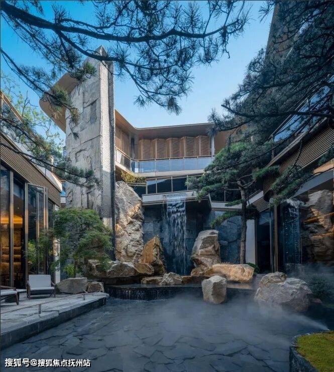 景观则借鉴西湖郭庄,于空间和场景的构建转换之中,植入水、石、松、亭、轩、瀑、桥等一系列传统园林符号,通过精妙的组合,营造充满诗意的栖居环境。
