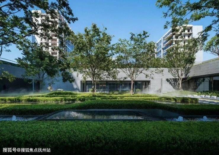 并通过跌水、涌泉和镜面水景等水景组合,将内部水景与外部水岸紧密相连。