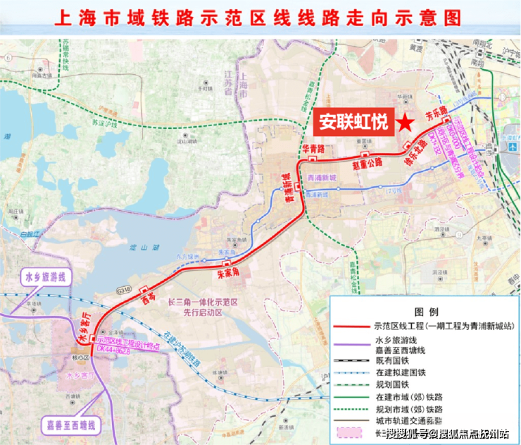 示范区线是一条联系虹桥主城片区与长三角生态绿色一体化发展示范区的市域铁路,同时加强华新镇等区域与虹桥枢纽的快速联系,未来可与13号线、17号线等线路换乘。
