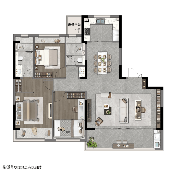 项目选配海尔中央空调、 汉纳纳米地暖、爱迪士新风系统;采用超规格910*127*1200mm书香门第实木复合地板;汇集科勒卫浴、恩仕、立邦等国内国际一线品牌,整体呈现当代高端度假酒店式色彩风格与高颜值色系。