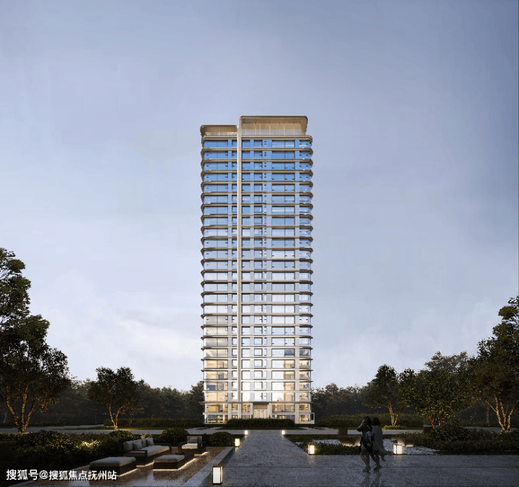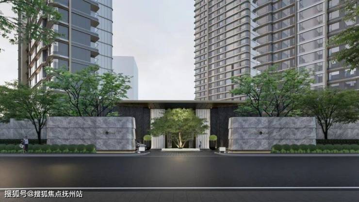 主入口大门高约9米,宽约30米,约7米进深的悬挑雨棚如巨翼舒展,既彰显高门大户的尊贵感,又如怀抱般予人归家的庇护与心安。
