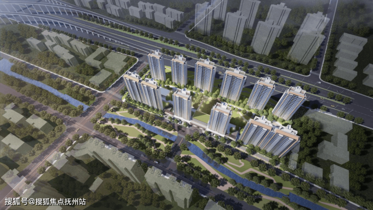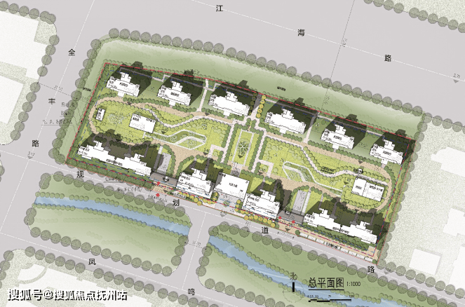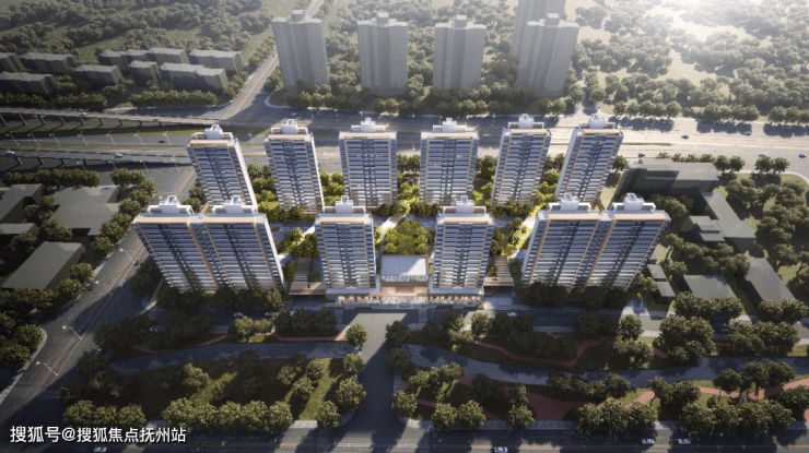 小区规划两排16到18层的建筑,围合出中心大花园。