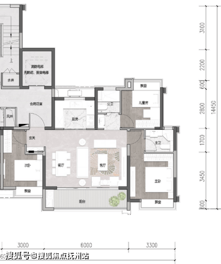 110㎡(3.5面宽,两面宽景观阳台+全景飘窗)