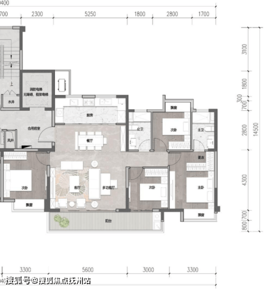 客餐厅超大共享方厅,格局方正,餐厨互动性强。