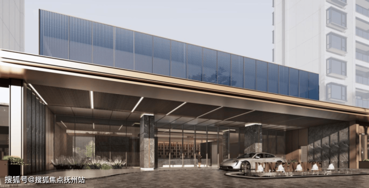 建筑立面以竖向横向线条交错,以简洁现代的建筑语言通过线条的穿插构成建筑立面的线条关系。以灰色材料作为主要色调,香槟色为辅,营造低调奢华的现代建筑气质。