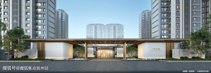 在建筑立面上,通透玻璃幕墙叠加铝板,缔就钻感镜幕墙,「江湾之钻」钻感面屏+大窗墙比,地标艺术美学,境启全新奢宅风尚。营造约60m尺度奢阔归家门庭,通过奢石、铝板、水景、弧线等精妙组合,成就江湾显赫的府邸门面,礼遇每一次的世界归来。