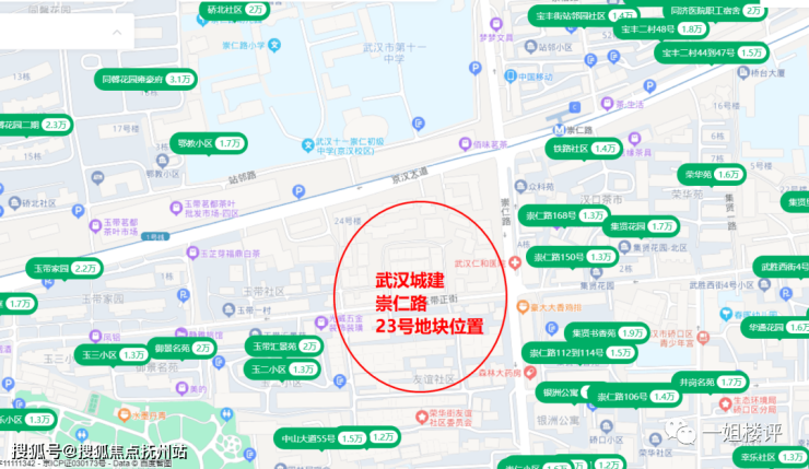 项目距离最近的楼盘是中建湖北文旅壹品公馆,它是硚口区单价地王,楼面地价达24162.80元/㎡。但是,它也卖毛坯,而且最近刚打出特价,30楼以下,113㎡单价2.3万/平,楼层任选,123㎡单价2.5万/平,楼层任选。