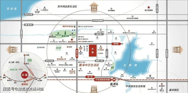 ·黄金干道:双高铁接驳,四横三纵城市路网,周边镇南路、震泽大道、双阳路、沪苏湖城际铁路(建设中)环绕,便捷通达长三角