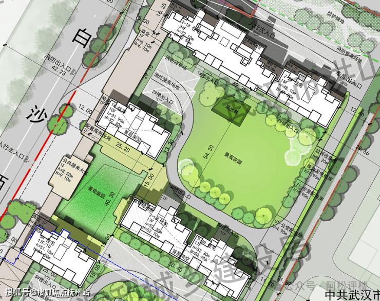 武汉城建白沙嘉序共规划有5栋10-26的住宅,以及少量临街商业。