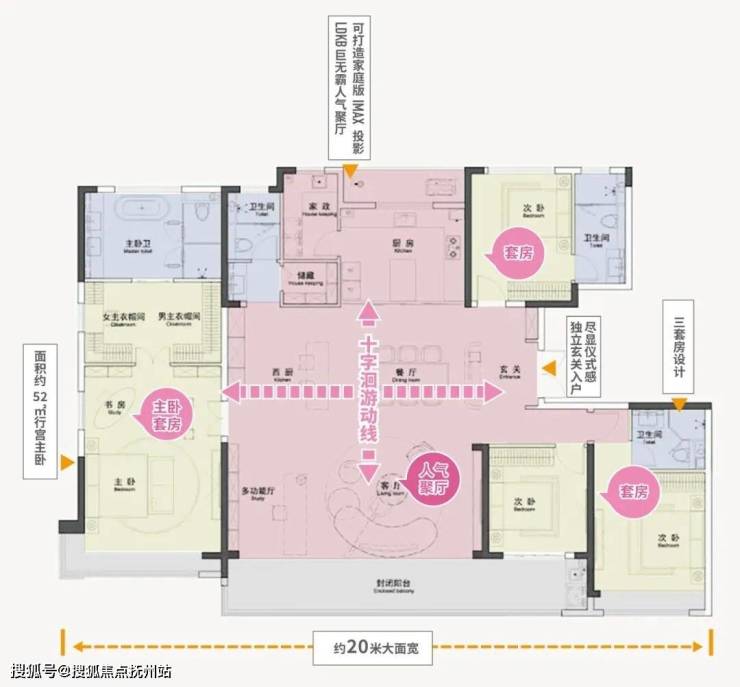 三套房设计,让每位家庭成员,都可以享受到空间平权。行宫主卧面积更是达到了约52㎡,除了大主卧,还配有男女主衣帽间、酒店式豪华洗手间、主人独立书房。
