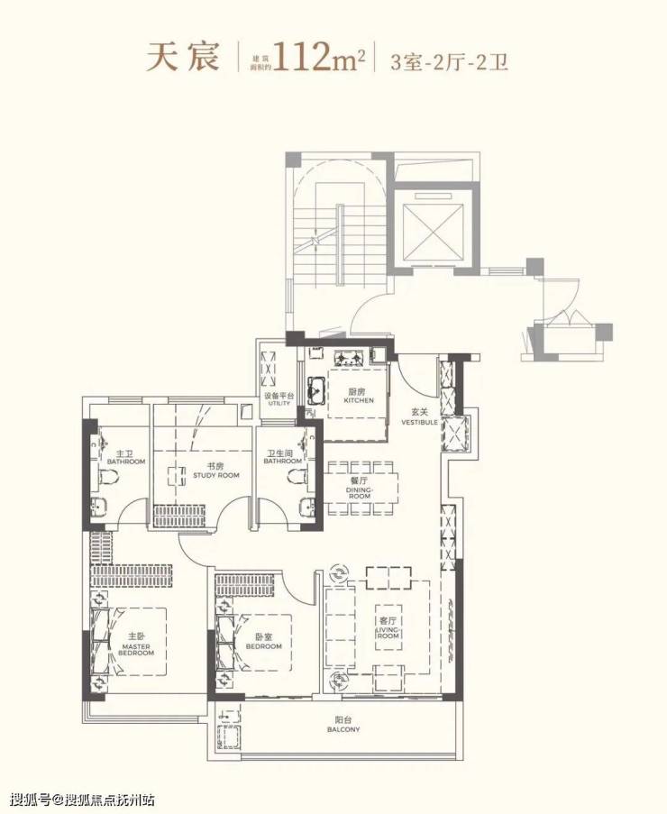 建面约112㎡户型,则通过南向三开间、约6.65米宽景阳台及奢阔主卧套房设计,科学划分动静区域,在共享天伦的同时,为每位家庭成员守护私密与尊严,从容应对多代同堂的改善需求。