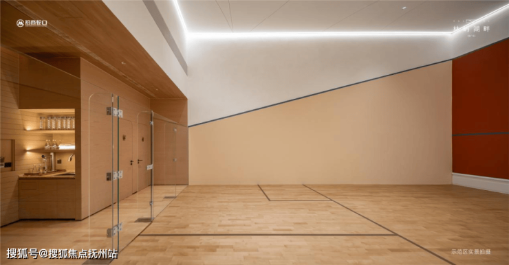 项目规划了约1200㎡的下沉式会所和约1700㎡的架空层空间,共同构成“双引擎圈层主场”。内部引入了嘉定首个国标壁球馆和美国沃特罗伦主题健身房,还配备了私宴厅、瑜伽室等多元空间,满足业主的健身和社交需求。