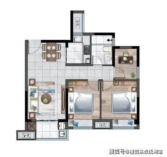 1.甜蜜两居,标准户型;