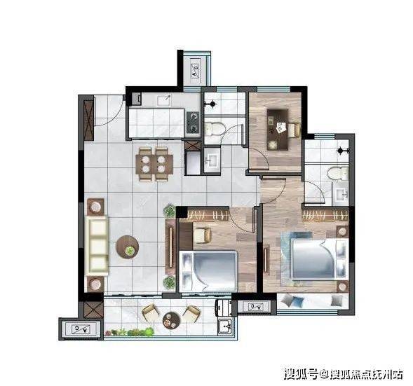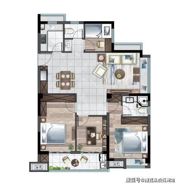 1. 三房设计,经典实用,传承现代生活;