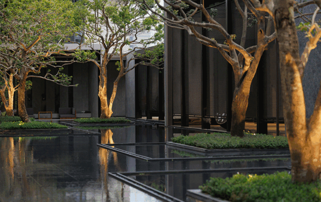 主大门口的阵列式迎宾叠水,以约200年的黑松为主景,尽显尊贵与大气。项目展示区随处可见豪宅专用铁冬青及丛生朴树、丛生凤凰木等。要知道,黑松市价近60万/棵,铁冬青和朴树也差不多要4.5万/棵,从这么大手笔的投入,就能看出松湖润府打造高端标杆的决心。