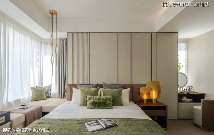 主卧套房设计,震撼拥有三面飘窗,还带有步入式超大衣帽间,阔绰的空间完全可以设计一个独立的化妆台,这样的高配,一整个爱了。