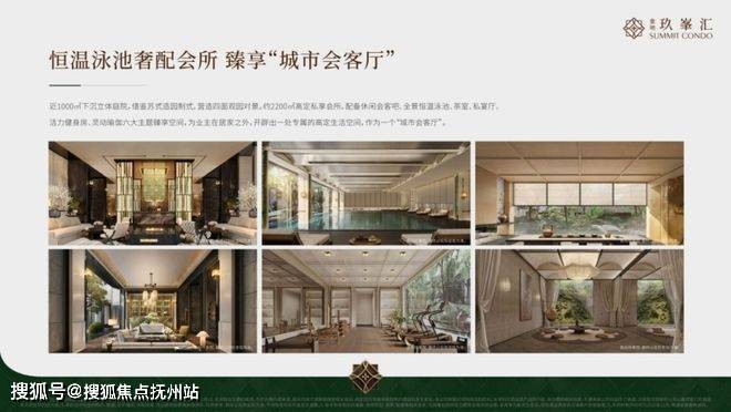 约2200㎡高定私享会所,配备休闲会客吧、全景恒温泳池、茶室、私宴厅、健身房、瑜伽室六大主题空间