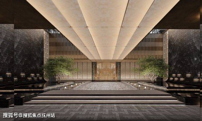 9️⃣四进归家,门庭礼序:首入约88米地标门厅,以苏州首座大尺度流光宝顶与铂金长屏,营造酒店式落客体验。再经约500㎡归家门庭,双瀑环抱,顺风顺水。穿越会所,经由两大归家花园与架空花园步入家门,层层递进,彰显门第尊荣。