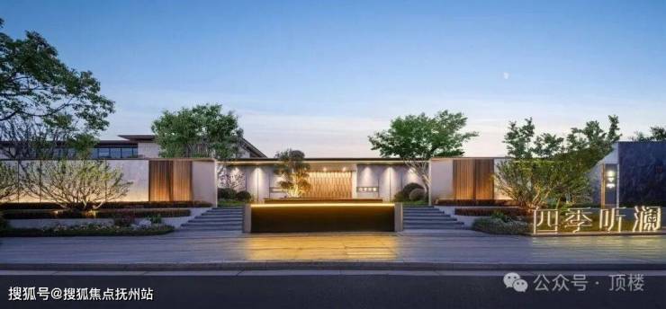 ①约37米恢弘府门,第一眼气场全开:融合东方礼序与现代线条,用仿石砖、金属格栅与灵动水景,铺就气势十足的归家序幕。